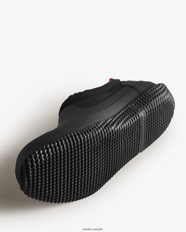 Take on the cold with these warm and snug slipper shoes. Merging two technical materials, the Original Vegan Shearling Shoe is handcrafted from natural rubber and insulating neoprene. A first for Hunter, the new 100% waterproof Men's Vegan Shearling Shoe is equipped with a firm grip perfect for slippery winter days. Featuring a draw-cord, Vegan Shearling fleece lining and a thermal insulated sole, they can be worn in temperatures as low as -5 Celsius (23 Fahrenheit). In a stylish black, choose this clog for your next frosty outing or simply as a toasty pair of slippers for cozy nights in.