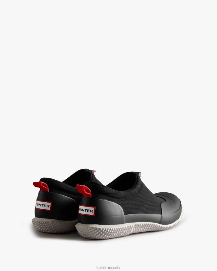 Engineered with an Original Hunter moulded rubber outsole for exceptional grip, these mesh mens beach shoes provide comfort and stability on outdoor excursions. Designed for a full day's wear, these mens aqua shoes have a neoprene and natural rubber construction with a mesh lining for breathability on the hottest days of the year as well as an Ortholite footbed, which acts like memory foam for the sole. These black and white slip-on mens water shoes are equipped with a contrast red pull tab for ease of entry and a drawcord for adjusting the fit.