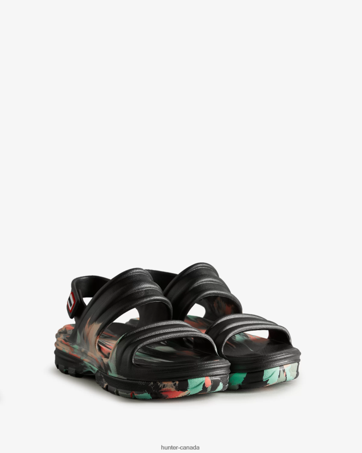 Protection, whether that's from the elements or of nature, is at the heart of Hunter. This season, we are excited to introduce a revolutionary new material produced from algae. When algae grows in excess, it can be harmful to ecosystems, so the algae in this material was sourced by cleaning up natural waterways. Our new Women's BLOOM Sandal is crafted from a blend of our familiar lightweight blown EVA and this innovative material. This black marble finish sandal from our injection moulded summer footwear range has adjustable straps and a chunky, durable tread for extra grip on all-terrains.