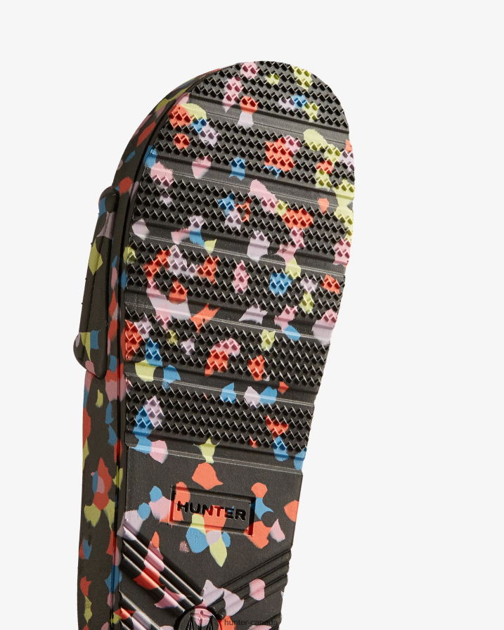 Protection, whether that's from the elements or of nature, is at the heart Hunter. This season, we are excited to introduce a revolutionary new material produced from algae. When algae grows in excess, it can be harmful to ecosystems, so the algae in this material was sourced by cleaning up natural waterways. The Women's BLOOM Slide is crafted from a blend of our familiar lightweight blown EVA and this innovative material. Featuring two moulded and contoured components, these black marble finished slip-ons have been re-engineered to be lighter and more comfortable.