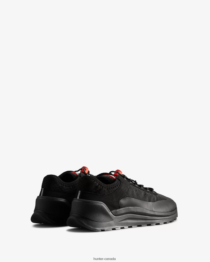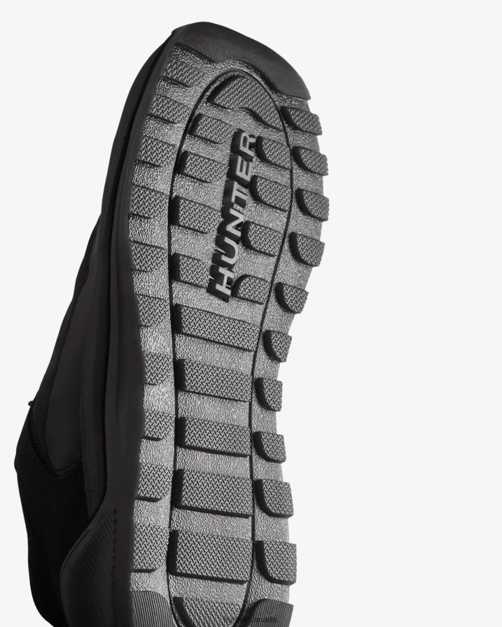 A casual city sneaker with a sport-luxe appeal, Hunter's Travel Sneaker is crafted from a soft and breathable double layer of 100% recycled nylon and mesh. The lightweight and shock absorbent recycled EVA midsole and recycled Ortholite insole ensures superior comfort and flexible wear, whilst the durable FSC-certified rubber outsole provides extra grip for all terrains. A super lightweight TPU rubber foxing line adds an extra level of protection from the rain. This women's black sneaker is finished with signature Hunter tri-colour logo pull tab on the back for ease of entry.